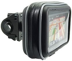 Nice product, water resistant, not waterproof. has rain jacket style zipper and a rubber grommet pass-through for cables. screens are easily manipulated through the clear plastic window. my only real concern with this product is the fact it attaches to the handlebar mount with to tabs that fit into slots that are only locked in place by friction. There is no lock mechanism. Since I intend to use this on a motorcycle I think that this is a very reasonable concern. I plan to remedy it by locking it in place with screws, but buyers need to be aware of this.The seller shipped very quickly and well packaged.