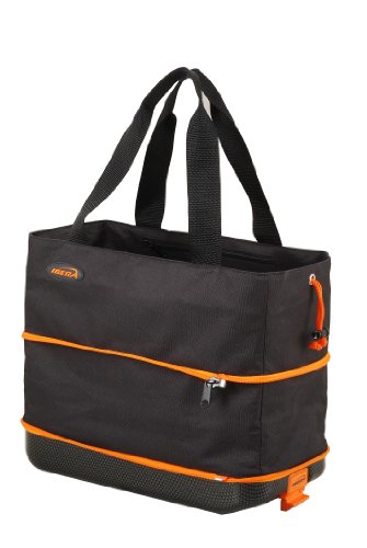 The Ibera eco-friendly reusable bag has handy carrying straps and a quick-release mounting system that installs and releases the bag within 3 seconds. A washable bag liner makes carrying everything worry-free. The expandable/collapsible style allows for a more compact style or one that allows the user to throw anything into it. Internal zippered pockets can store money and keys. A top enclosure with bungee cords ensures that overflowing items do not fall out. It is made of 600D nylon and has a durable ABS base.
